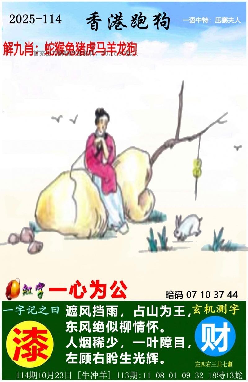 115期:六肖【牛蛇兔猴龙马】开:蛇01中